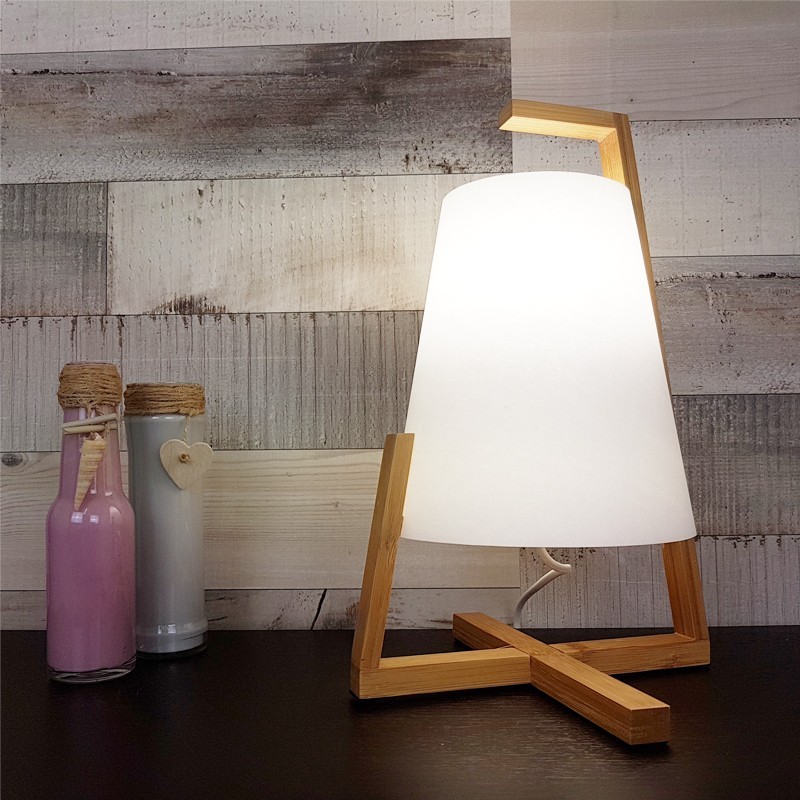 Cette lampe à poser est constituée d'un pied en bambou et d'un abat-jour plastique et papier. Haute de 31 centimètres, elle s'installera parfaitement sur le buffet de votre séjour, sur votre table de chevet, étagère ... Elle tapera dans l’œil de vos invités à coup sûr avec son originalité débordante. Elle peut s'adapter à plusieurs atmosphères. En effet, la touche naturelle et chaleureuse du bois participera à une ambiance de bien être et zen. Elle possède aussi un côté inédit par sa forme, qui s'harmonisera avec un style plus contemporain.