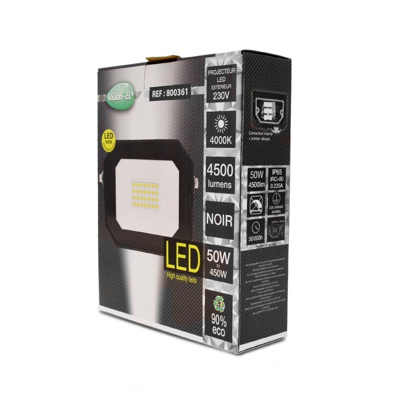 Un projecteur puissant pour votre extérieur. Qu'il soit installé sous un auvent, sous une toiture, sur un mur ou sur un poteau, son éclairage en blanc neutre vous fournira 4500/4700 lumens à utiliser sans modération. La technologie LED étant économique, vous ne compterez maintenant plus les minutes passées à éclairer votre jardin ou votre façade.