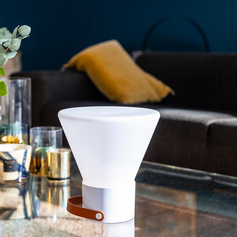 À la fois moderne et originale, cette baladeuse autonome JOE CONIC répondra à tous vos besoins. Quel que soit le lieu où vous vous rendez, vous pourrez la poser de partout et si ça n'est vraiment pas possible, sa lanière en cuir vous permettra de la suspendre. Offrant une grande autonomie de 10 heures, elle est tout à fait adaptée pour partager de bons moments entre amis et voisins. La charge se fait grâce à un socle fonctionnant par induction. Elle trouvera à coup sûr une place de choix dans votre salon, chambre, terrasse ou jardin. Protégée par la norme IP 44, elle ne craint pas les projections d'eau. Cette baladeuse JOE CONIC est assurément un compagnon de choix.