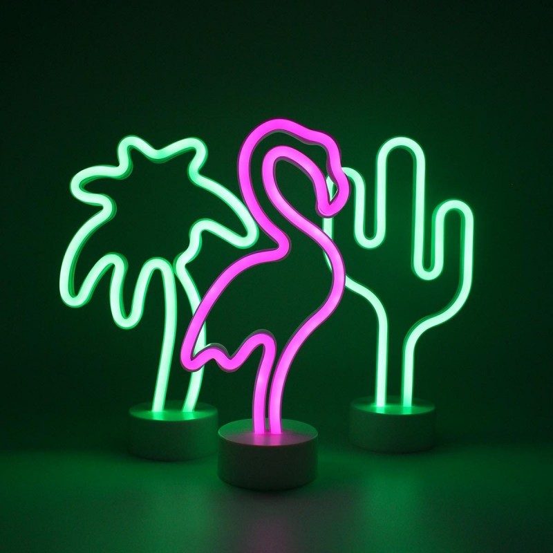 Lampe Palmier Lumineux COCONUT PALM NEON - 48 Lumens - IP20 - 3 Piles AA - Classe III.