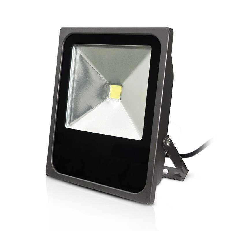Projecteur Standard Plat LED COB Miidex Lighting - Consommation 80 watts - jusqu'à 6600 lumens - 220-240 volts AC - Noir ou Gris au choix - Aluminium + Verre + PC - IP65 - certification(s) CE / RoHs / EMC