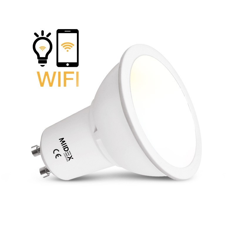 Ampoule LED GU10 5W connectée - CCT - Miidex Lighting - 230V - Puissance de 5W équivalente à 45W - Fonctionne avec l'application Smart Life - Compatible Google Assistant, Google Home, Amazon Alexa, Freebox Delta - Wifi 2,4 Ghz - Variateur intégré.