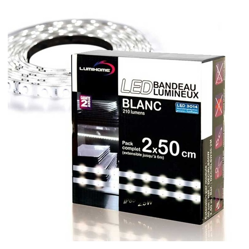 Coffret 2x50cm Ruban LED Blanc Lumihome®