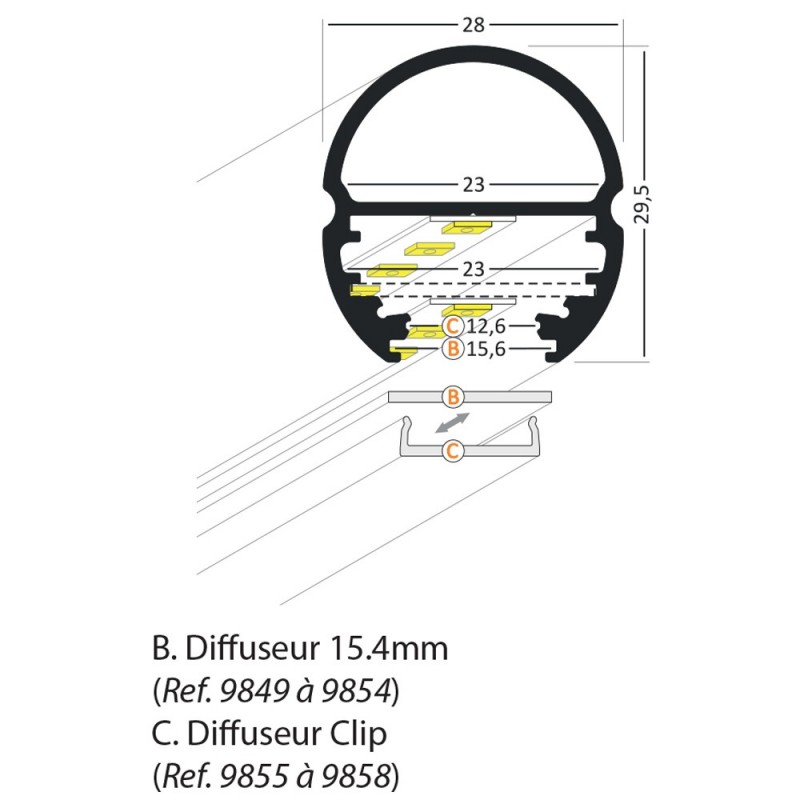 Finition impeccable et protection optimale du strip LED! Ce profilé Aluminium ovale est compatible uniquement avec les rubans LED de 10 mm de large maxi. Les versions non étanches (IP20) ou avec résine époxy (IP65), de 4,8 à 14,4 watts / mètre. Ce profilé est spécialement conçu pour remplacer vos tringles de penderie, ou bien les tringles de suspensions (tableaux ou autres objets suspendus) pour un éclairage venu d'ailleurs qui épatera vos amis! Les profilés alu permettent de mieux dissiper la chaleur produite par les rubans LED et ainsi d'augmenter leur durée de vie. Ils permettent également d'assurer une finition irréprochable à votre installation. Les accessoires de fixation et les terminaisons sont vendus séparément.