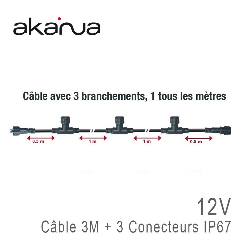 Câble Chaînage 3 mètres + 3 Sorties IP67 12V Akanua®