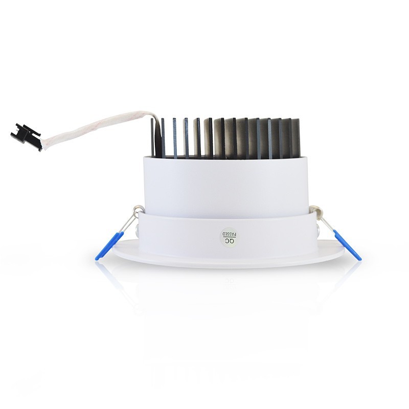 Spot Rond Orientable LED COB Miidex Lighting - Consommation 12 watts - jusqu'à 880 lumens - 220-240 Volts AC avec transformateur inclus - Blanc - Aluminium + PC - IP44 - certification(s) CE / RoHs / EMC