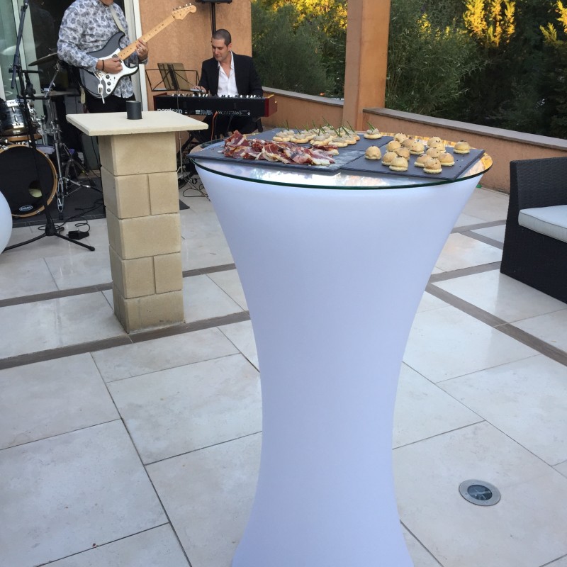 Ce beau mange-debout propose un éclairage multicolore sans fil pour illuminer vos réceptions et soirées. Il est rechargeable très facilement et rapidement (5 à 6 heures). Sa grande autonomie vous permet de profiter de sa lumière tout au long de votre évènement festif. Son design moderne et sa ligne élancée créent une ambiance chic et sophistiquée.